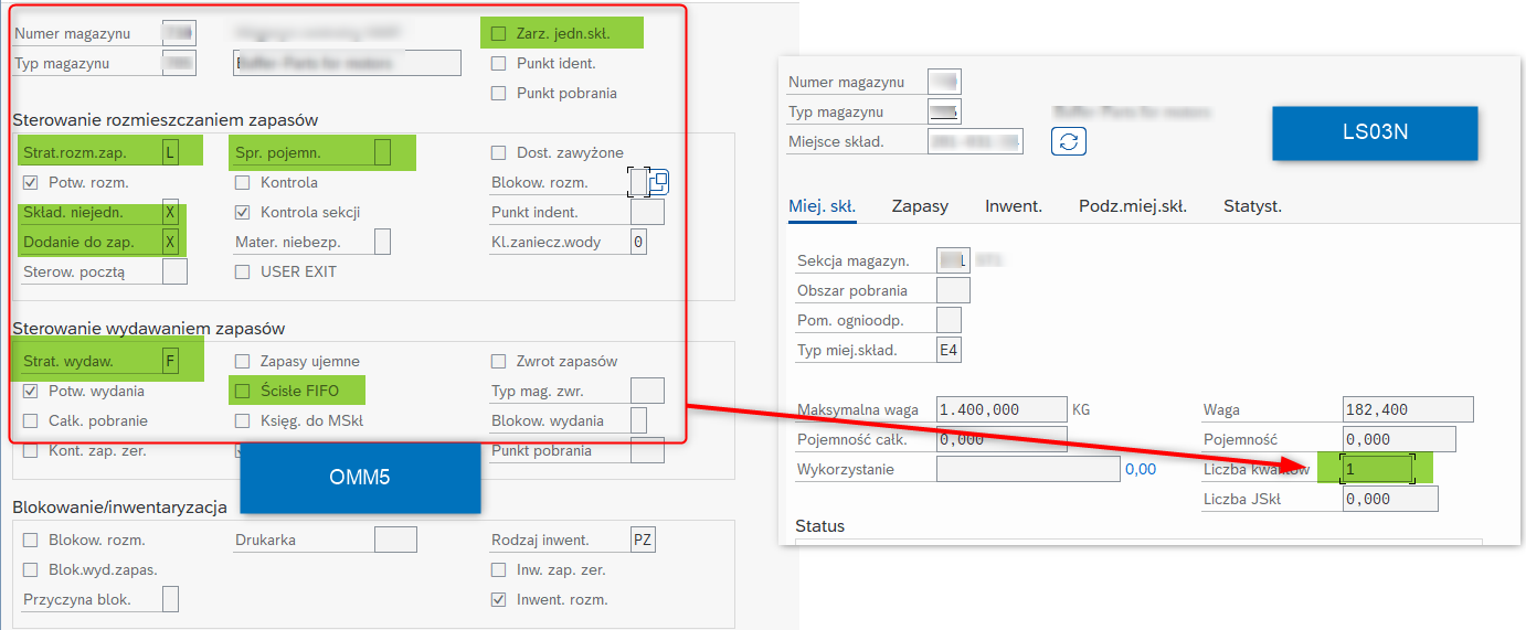 - system dokładnie sprawdza poniższe pola, dla typu magazynu do którego przynależy miejsce składowania